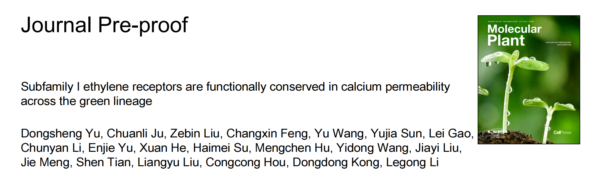总之,本研究揭示I亚家族乙烯受体ETR1/ERS1具有Ca²⁺通透性,乙烯可增强其介导的Ca²⁺内向电流;缺失ETR1/ERS1会削弱乙烯诱导的胞质Ca²⁺升高。多种藻类与陆生植物ETR1同源蛋白同样导钙,提示该功能在绿色谱系中保守。该工作将乙烯受体从“信号感受器”拓展为潜在的Ca²⁺通道组分,建立乙烯—Ca²⁺耦联的分子基础,为解析激素信号编码与胁迫响应提供新机制与干预靶点。