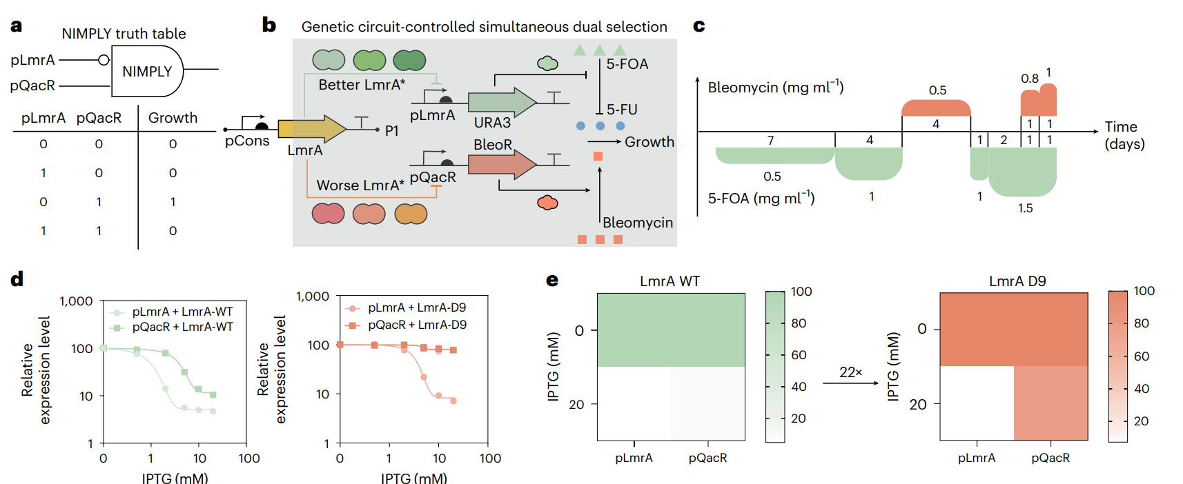 图5为:LmrA的基因电路控制与生长耦合可编程进化