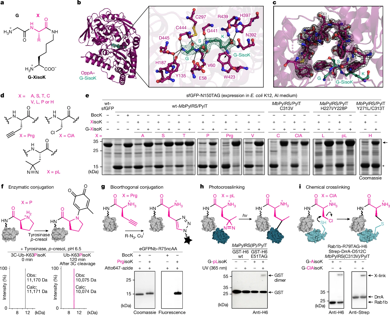 来自瑞士苏黎世联邦理工学院Kathrin Lang课题组发现细胞对ncAA摄取效率低是限制遗传密码扩展效率的主要障碍。为解决这一瓶颈,研究者 “劫持”了一种细菌的 ATP结合盒(ABC)转运蛋白,使其能够主动导入一种易于合成的异肽键连接三肽。这些三肽在细胞内被加工为ncAA,从而实现高效的ncAA导入与利用。通过这种方法,研究者能够高效地编码多种此前难以掺入的ncAA,使蛋白质可以被修饰上具有生物正交(bioorthogonal)或 交联(crosslinker)化学基团的结构单元,以及实现类似翻译后修饰的功能。此外,研究者建立了一个高通量定向进化平台,用于工程化改造专门的转运系统,以导入那些历史上难以被高效摄取的ncAA。表达这些改造型转运蛋白的大肠杆菌菌株能够以接近野生型的效率实现单位点或多位点的ncAA掺入。此外,研究者还对三肽骨架进行了改造,使其能够同时协同转运两种不同的ncAA,从而实现高效的双重掺入。综上所述,本研究表明:通过工程化改造细胞的摄取系统,可以实现对多种化学结构单元的可编程导入,为遗传密码扩展及蛋白质功能化提供了全新的策略。